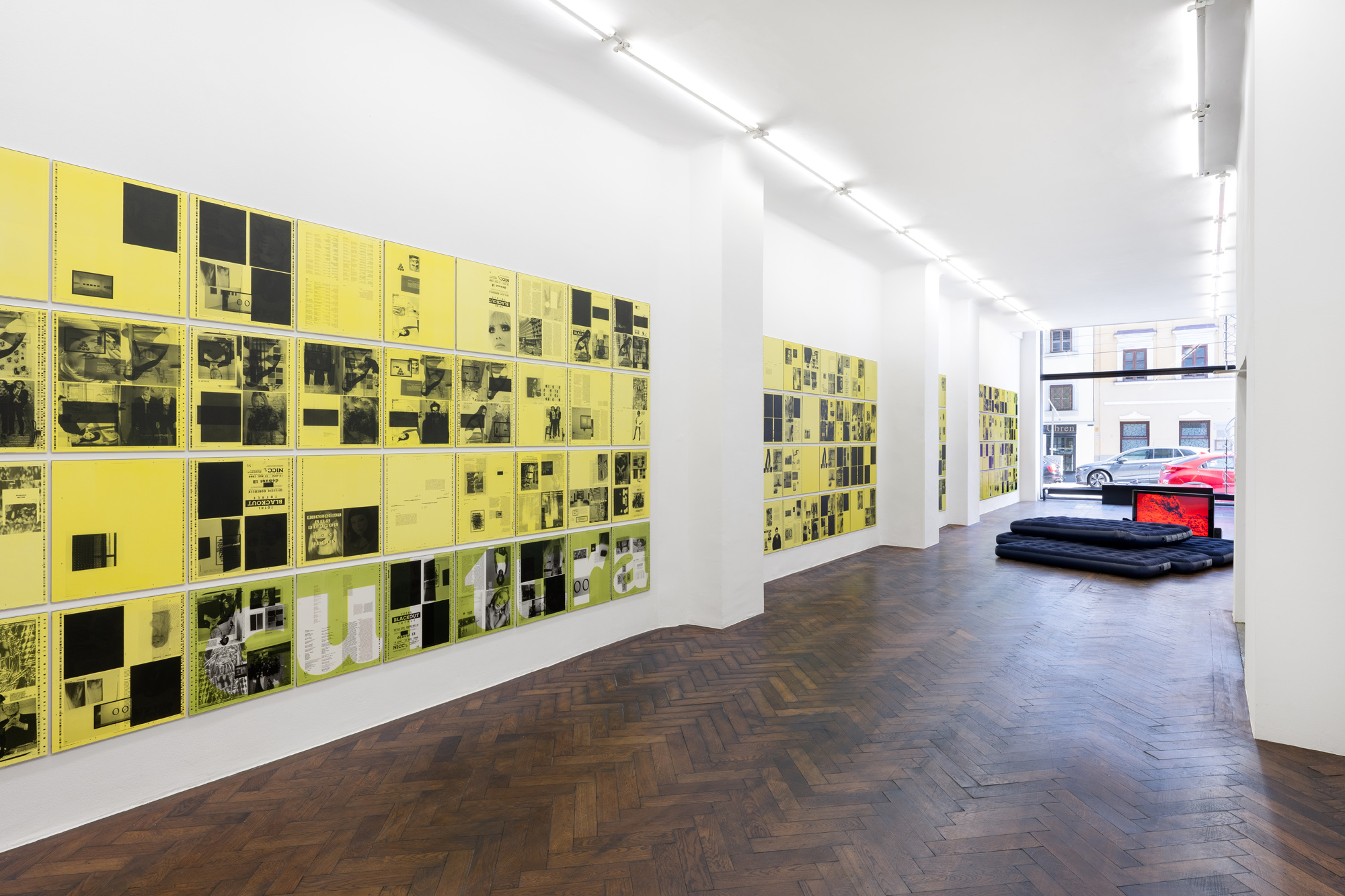 Willem Oorebeek works with mass-produced images, which he manipulates and transposes using various printing processes. Banal, yet strategically placed communication objects in the space of the public thus become image surfaces and are exposed in their malleable structure between abstraction and depiction, form and sign. Attracting and at the same time withdrawing, the media image presents itself as an omnipresent surface that suggests perception of the world and yet blocks access to reality in its insistent presence.