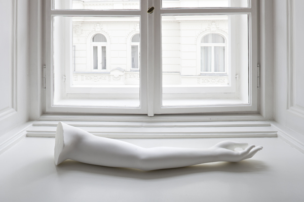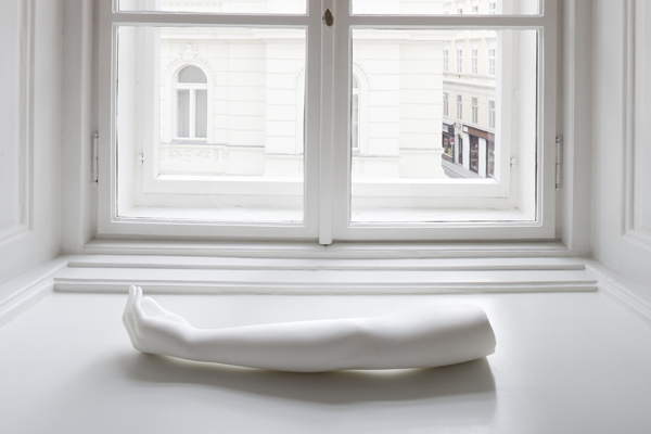 Ausstellungsanischt, Daniel Knorr, Erben Schenken Übertragen (Die Arme der Venus von Milo), 2011