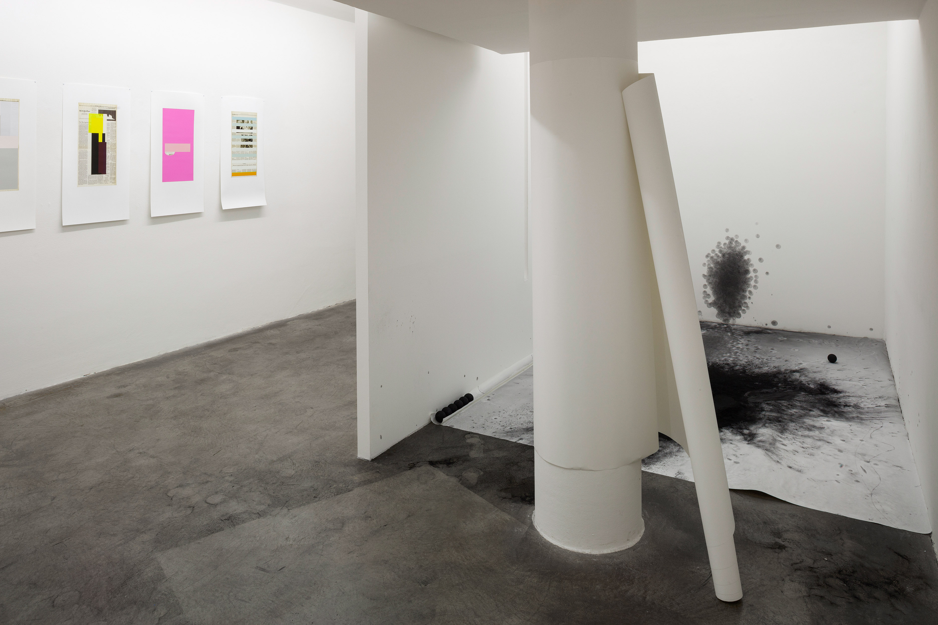 Polly Korbel, Work, Performance, powdered graphite, rubber balls, dimensions variable, 2015