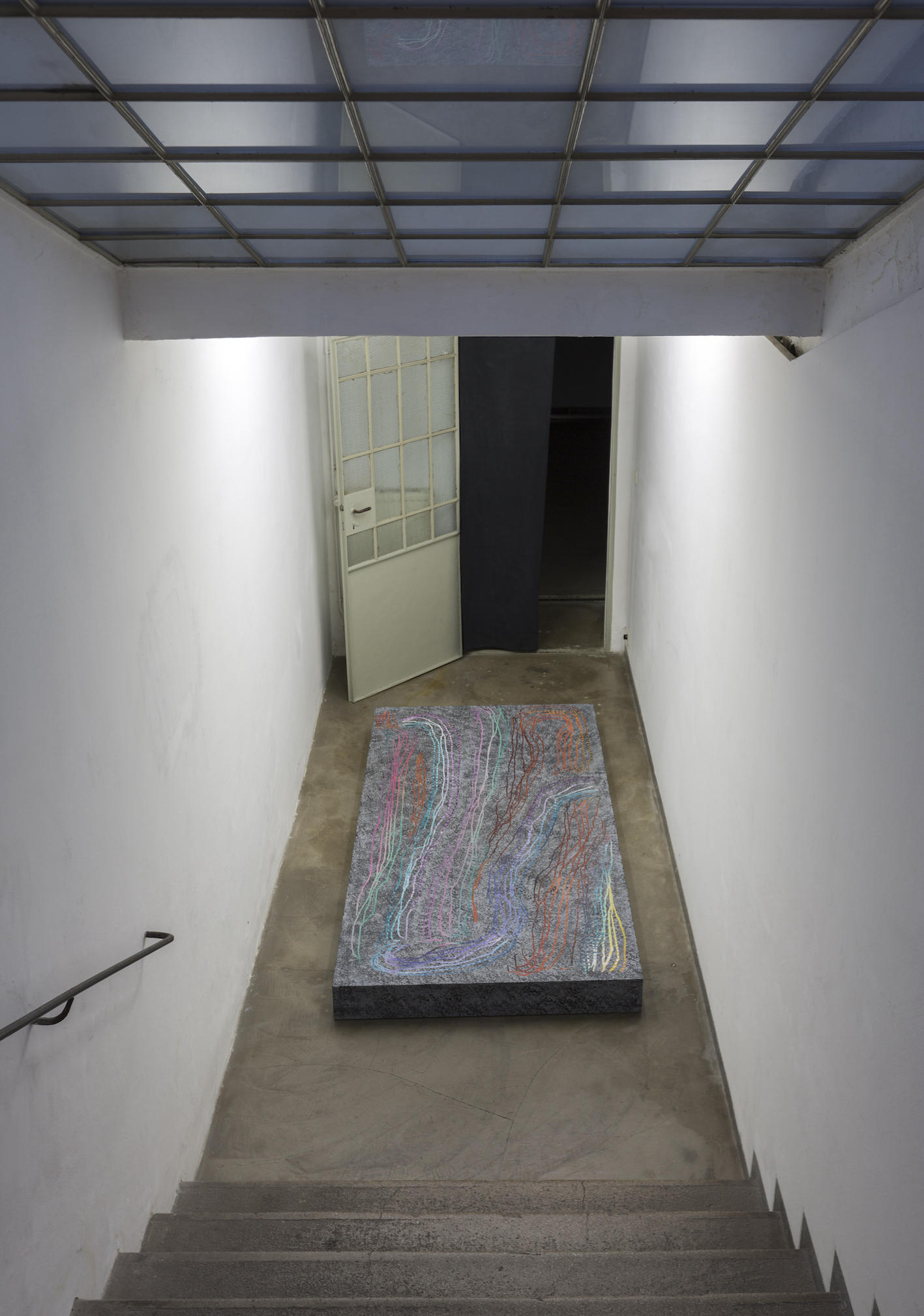 Merike Estna, and just a few brushstrokes away just a few lines of memories just a single drop of paint, 2016, painting as a stage, acrylic on MDF board, 122 x 244 x 20 cm, exhibition view Winter is coming (Homage to the Future)
