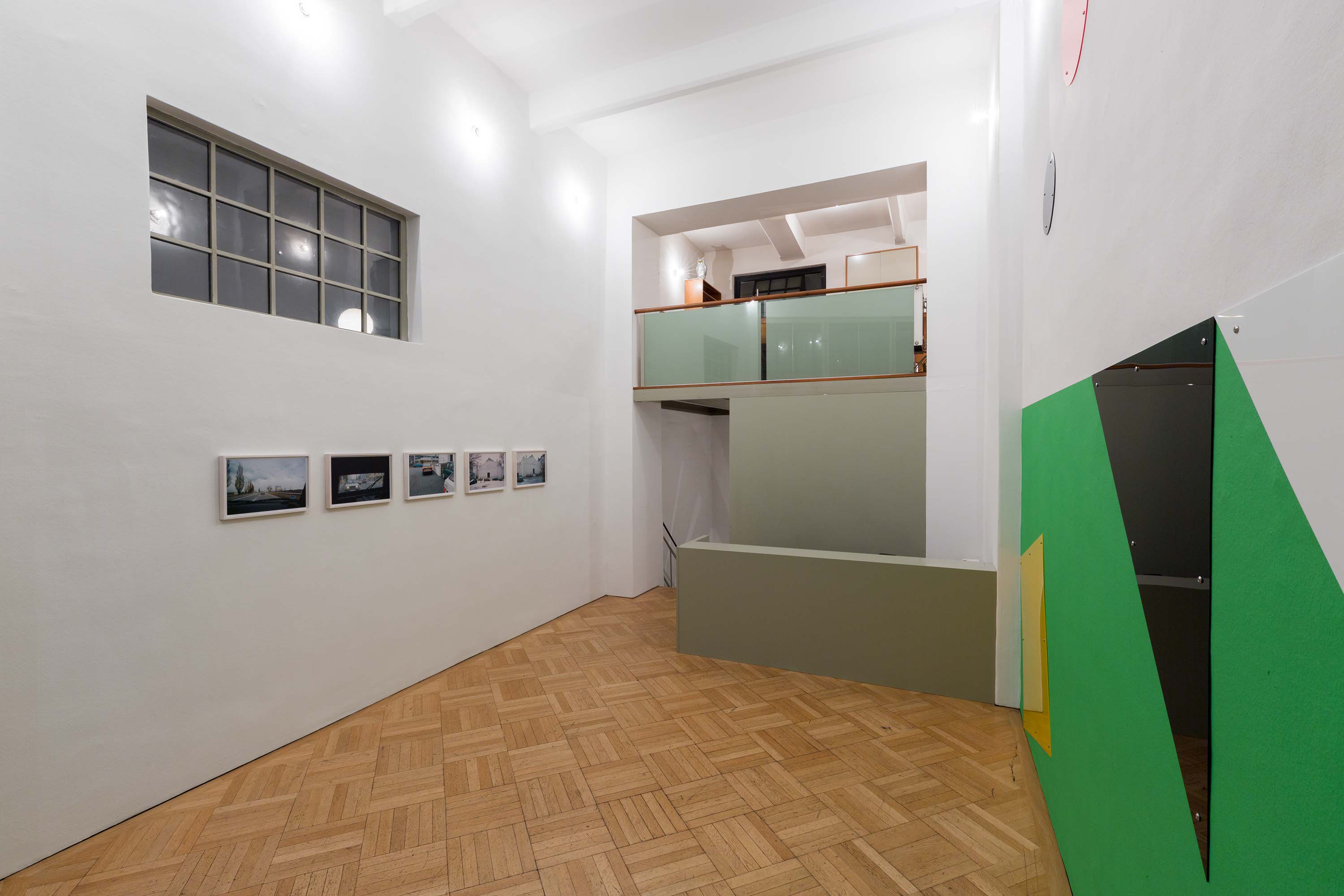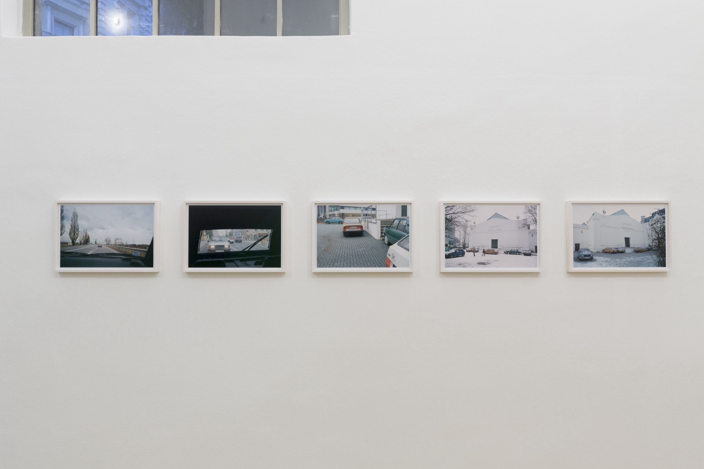 Roman Ondak, SK Parking, 2001 photographs mounted on dibond, series of 5, 34 x 49 cm, exhibition view Vienna Transit