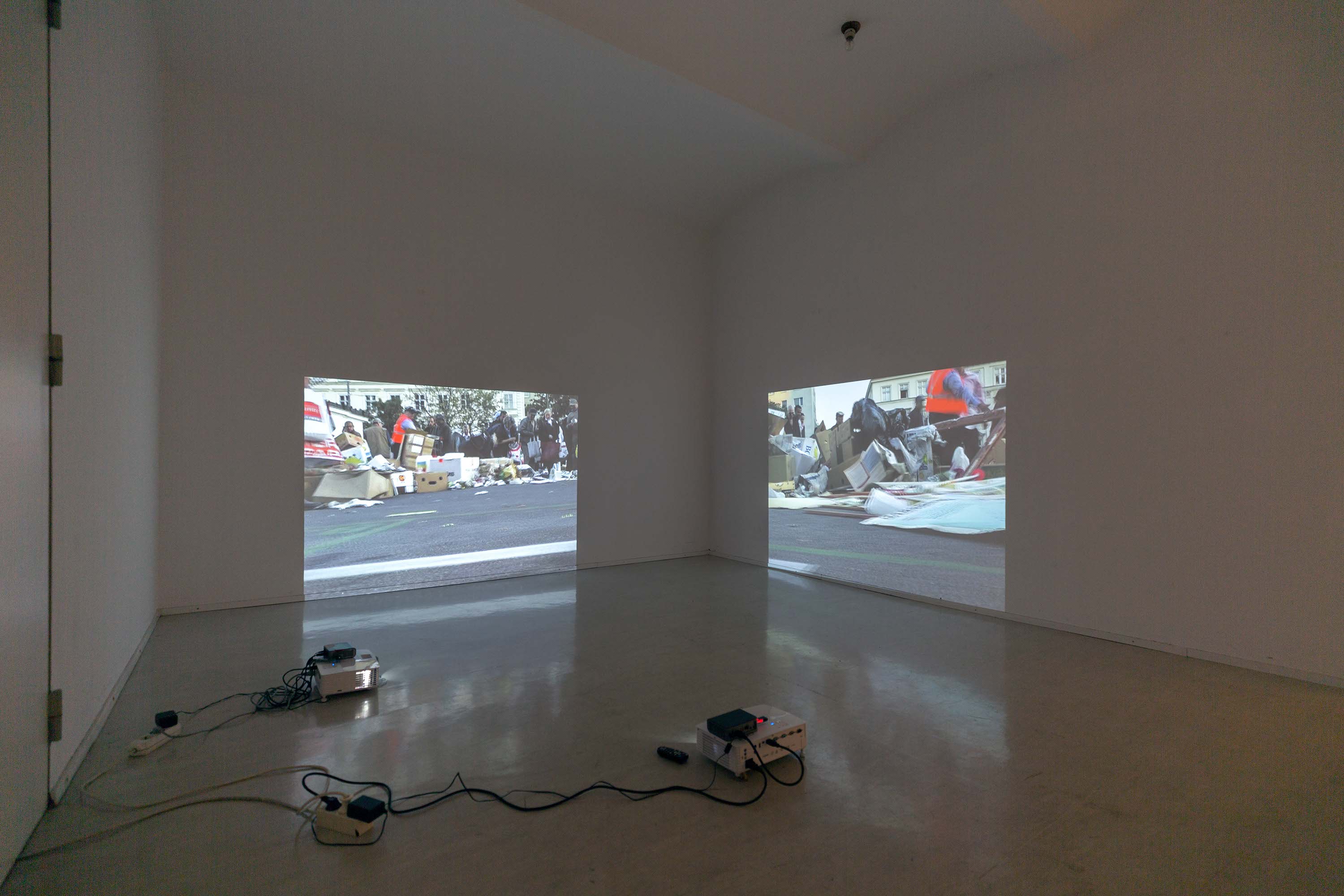 Anna Jermolaewa, Step Aside, 2006 - 2008, 2-channel video installation, 5 min. loop, exhibition view Vienna Transit