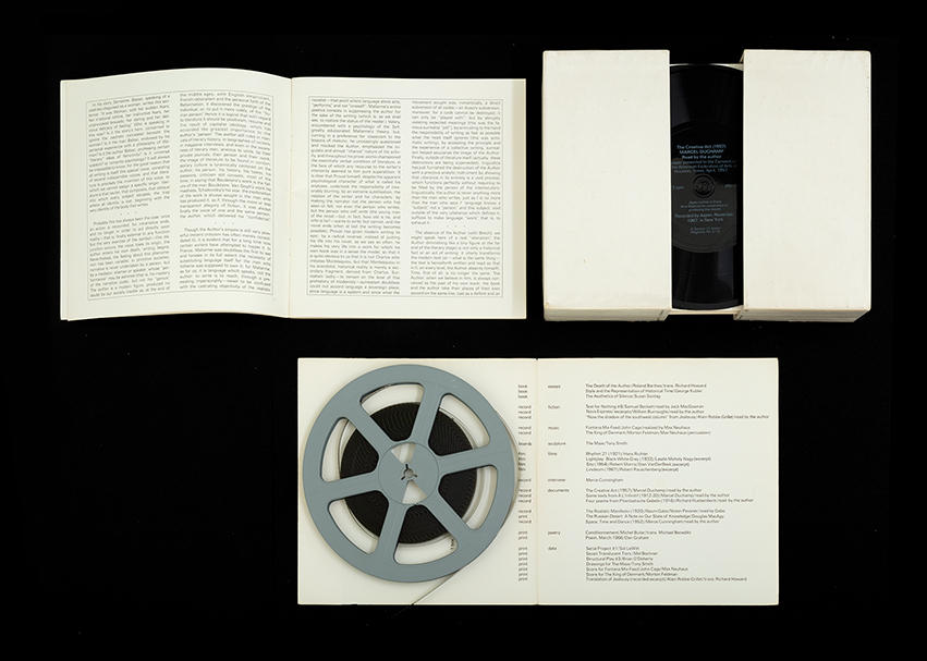 In addition to the French philosopher and literary critic Roland Barthes (1915–1980), who lends the theme of “The Neutral” to this year’s festival Curated by in Vienna, our exhibition strives to remember another great person who is absent: the artist, writer, and most prominent theorist of the “white cube” Brian O’Doherty (1928–2022). We are presenting O’Doherty’s last novel The Crossdresser’s Secret (2014), the title character of which is Charles-Geneviève-Louis-Auguste-André-Thimothée d’Éon de Beaumont (1728–1810), a historical transsexual person better known as Chevalier d’Éon. Throughout O’Doherty’s life, he explored the concept of personas in his artistic work and used several alter egos, publishing books and exhibiting under their names. When he made his different personas public in 2011, he stressed that “the adopted names all did something” because they enabled him to “shrug off the cloak of selfhood” and to react to social issues “from another angle of perception.” Bringing together different voices was also decisive for his work as an art critic. For example, in 1967, O’Doherty was the editor of an issue of the Aspen Magazine, which was published in the form of different (printed) media inside a box. The box contained artistic, literary, musical, and scholarly contributions by such figures as George Kubler, Susan Sontag, Samuel Beckett, William S. Burroughs, Alain Robbe-Grillet, John Cage, Morton Feldman, Tony Smith, and Marcel Duchamp. O’Doherty also published Roland Barthes’ essay “The Death of the Author,” which is about the art of reading, in this issue, one year before it came out in the French original.