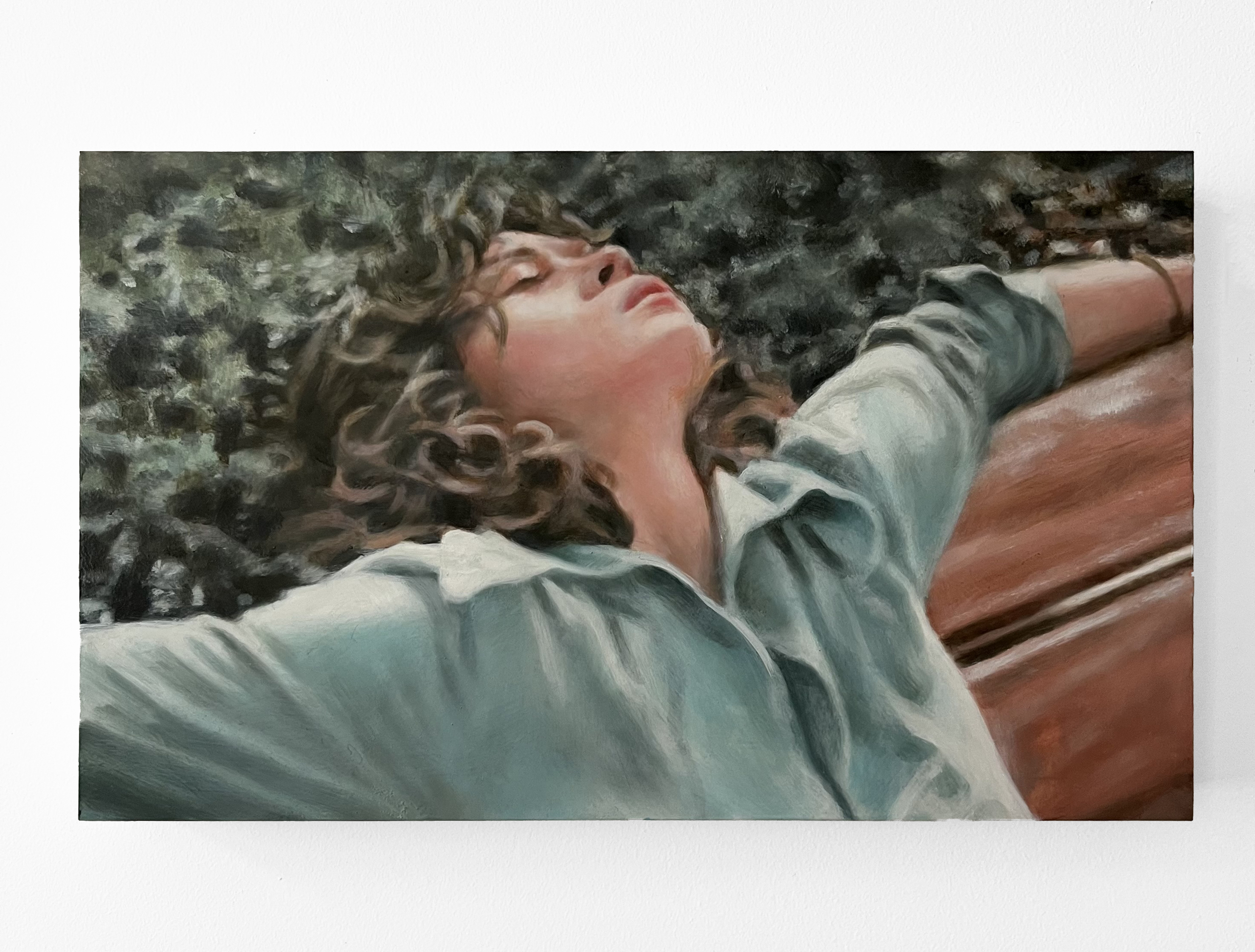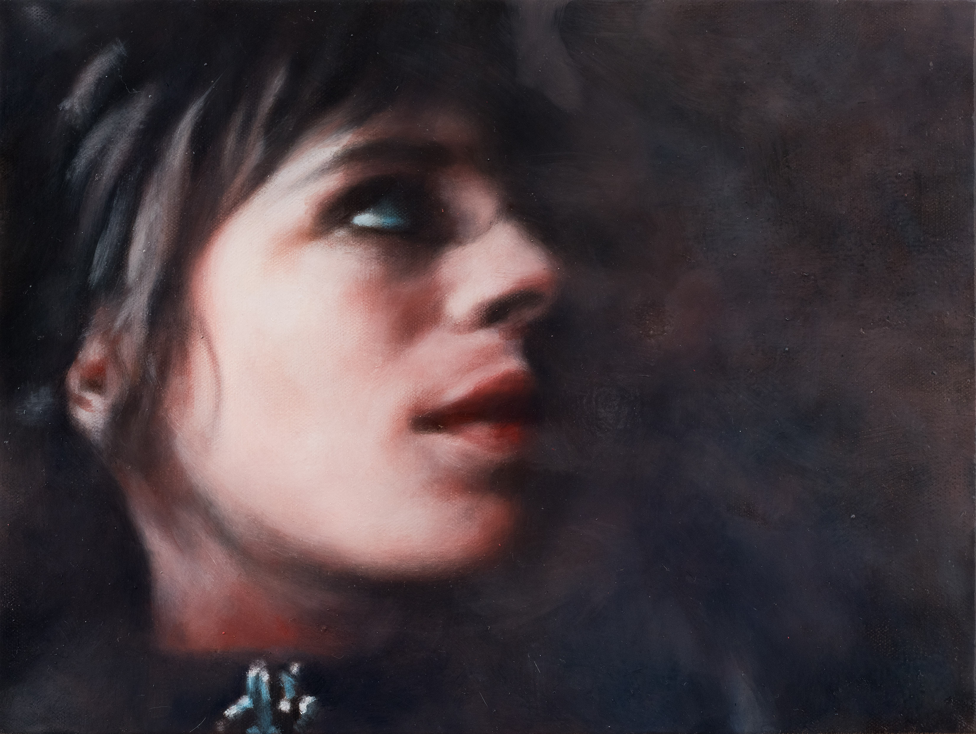 Even Alexandra Noel reflects on repetition in her paintings: “I don’t often paint people, but I’m thinking about them while I’m painting, so maybe they’re infused in them somehow. It’s like watching a film made up of the same frame repeated again and again. I’m waiting for the actor to appear or for something to move. There’s a light behind it, and I can hear the film physically moving, but the screen is static.”