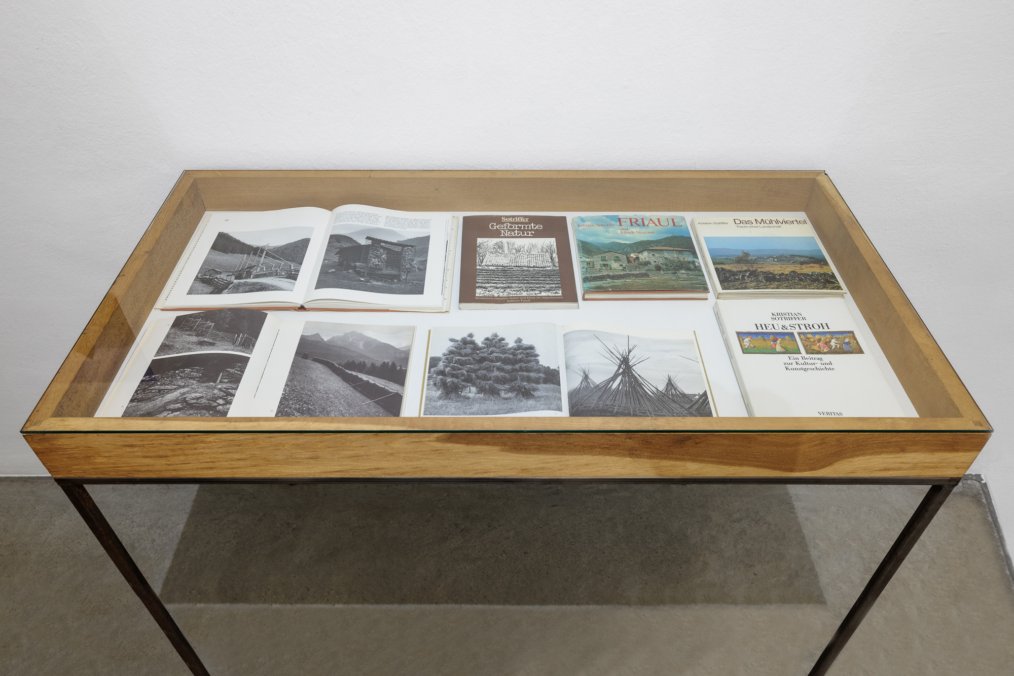 The approach of an additional, important reference figure for Holzapfel can be viewed in a similar fashion. The photographs of the South Tyrolean publicist, art critic and local history researcher Kristian Sotriffer (1932-2002) connect the segments of the exhibition. Sotriffer, for his part, called into question the national boundaries of the Alpine region and viewed the region as a coherent cultural space. In his book “Heu & Stroh” [“Hay and Straw”], he pursues regional idiosyncrasies and cultural techniques in interaction with these materials: they fascinate him just as much in the rural forms at harvest time, as they are also extensively situated by him in the history of art. Sotriffer’s photographs are part of the exhibition. In an essay entitled “What I call homeland, or how the homeland can abandon one” (1983), Sotriffer argues for a new usage of the term ‘homeland’, so that it is inclusive and not exclusive. He sees ‘homeland’ as a dynamic, flexible idea that is in flux, in contrast to the projection of habitual traditions. To conceive of craftsmanship as ‘fixed’ misses the point of the processes of development of these traditional practices, since these are constantly progressing and should not be proclaimed as unalterable. For Olaf Holzapfel just as for Kristian Sotriffer, the issue is far more about the presence of an environment in all its potential, not questions about its established origin per se.