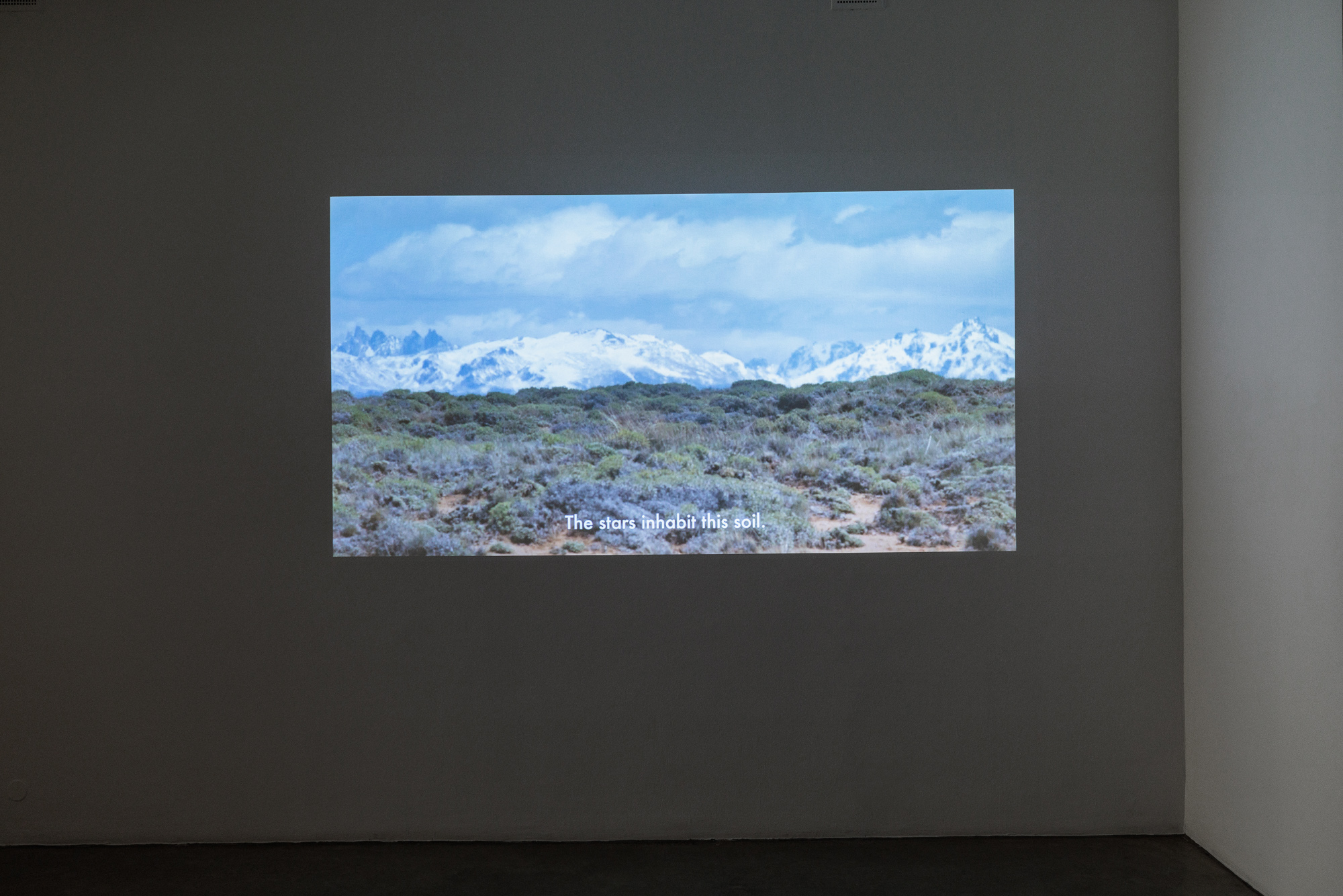 Olaf Holzapfel’s interest in transitional zones, the in-between, is also apparent in his film Latitude 40°. He depicts the broad landscapes of southern Chile and Patagonia in sensuous, almost overwhelming images. We see sky, land, the herding of animals, maintenance repairs that are completed, and again and again the contrast between fences that appear as miniatures in images that are dominated by clouds and sky. In one musical passage, the fragmented beats correspond to the refracted sky, therefore creating a feeling that is immersively overpowering. Once more, the artist brings history and the present into a dialogue by referencing the German geographer Hans Steffen (1865-1937), who attempted to draw exact divisions throughout one landscape and cultural space in order to determine the border between Argentina and Chile. The poetry of the Mapuche poet Elicura Chihuailaf ponders human and nature, testifying to a self-evident, flowing sense of connection without idealisation. In this manner, the tiny fences that divide the landscape can be understood not as boundaries, but rather as connecting lines of the settlements, leading from one to the other and overriding artificial partitions.