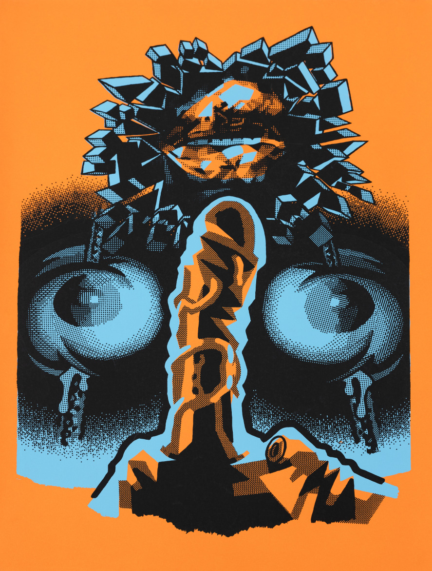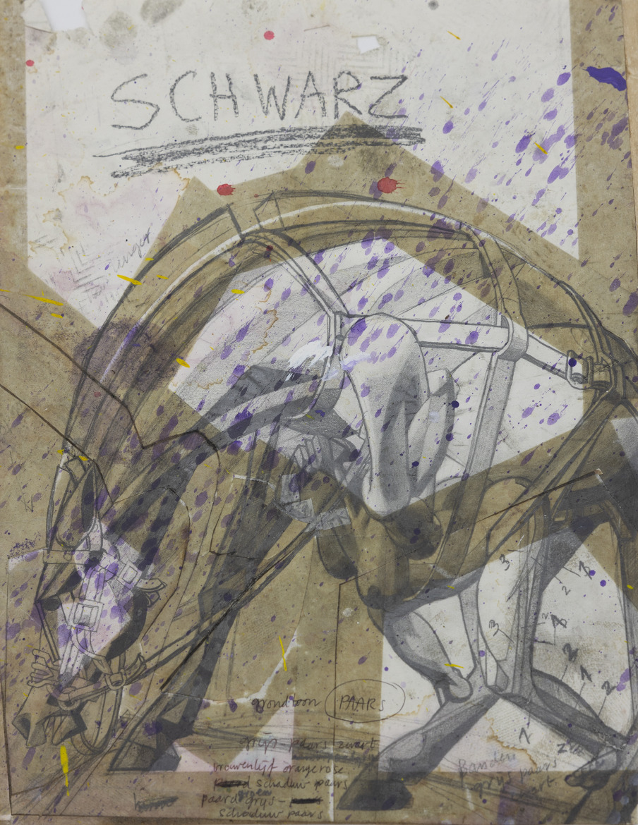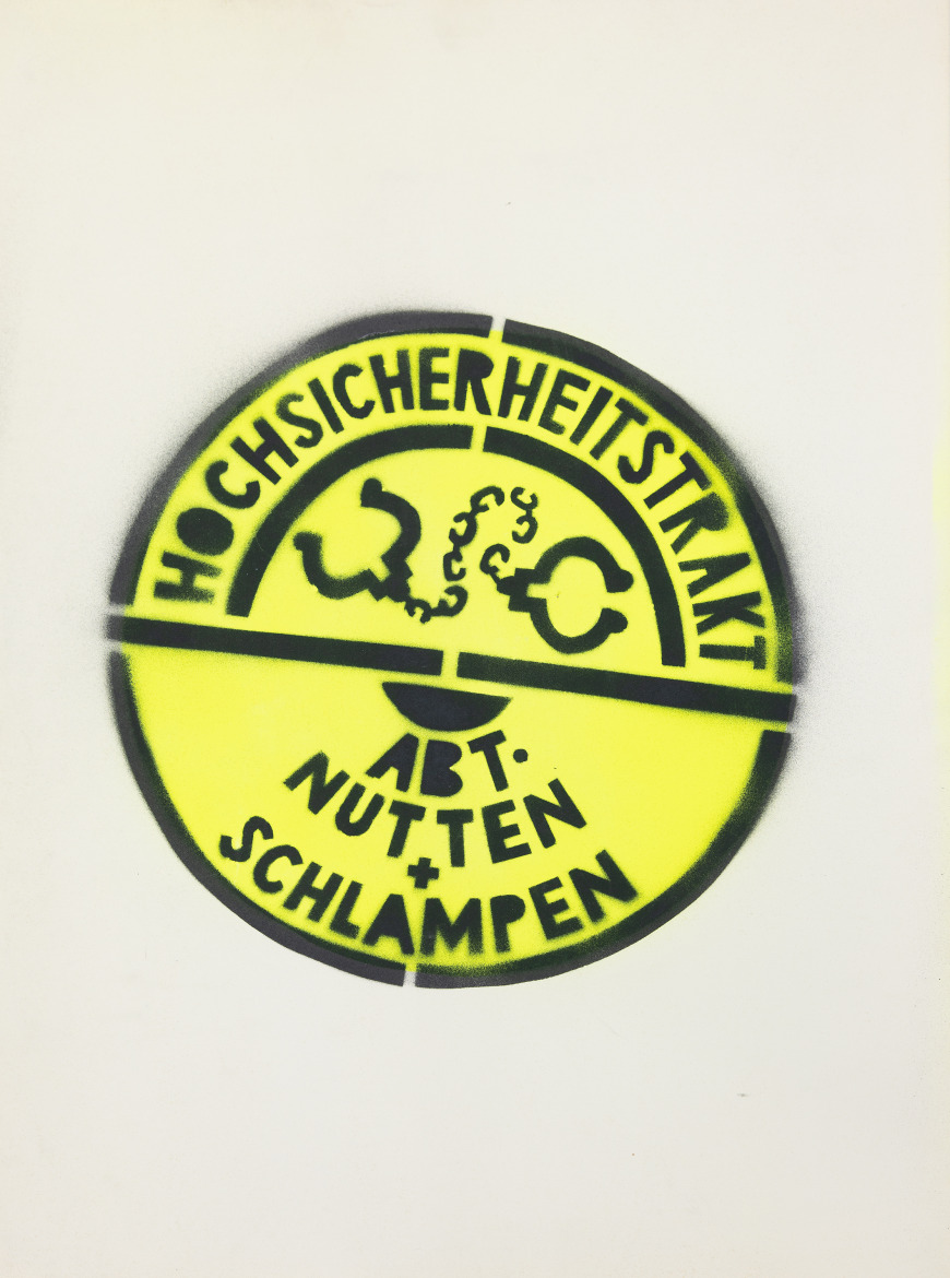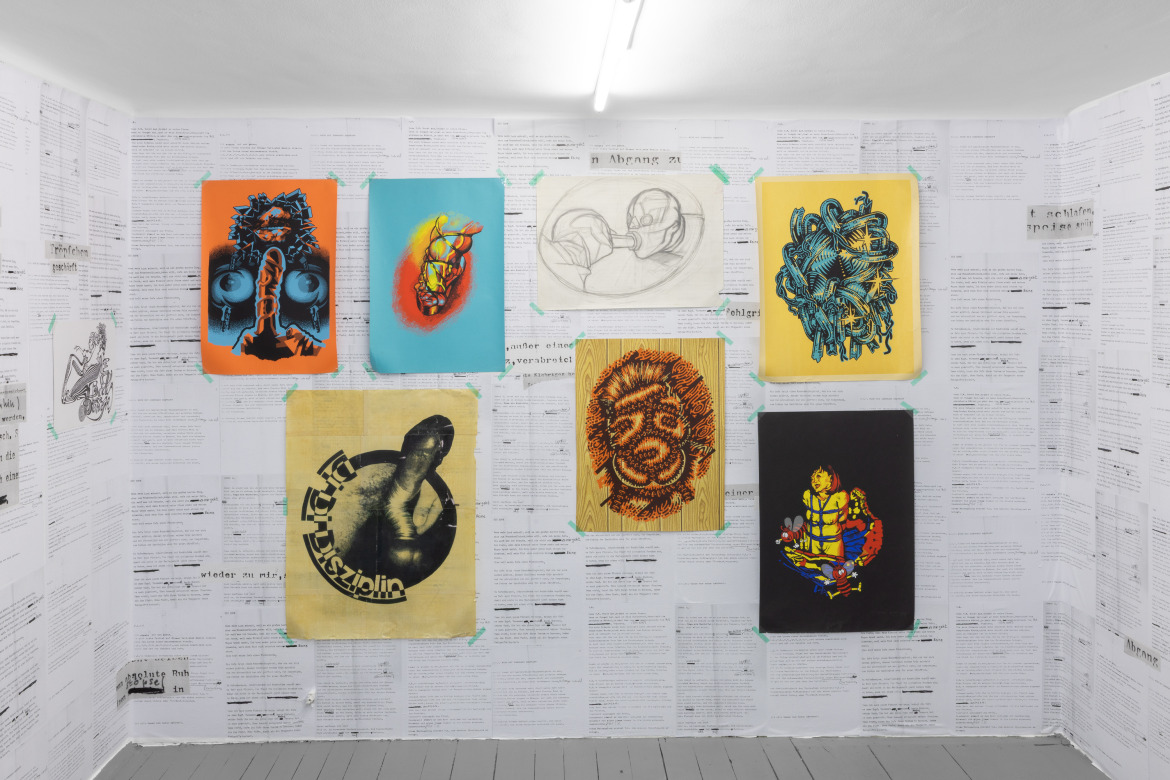 The Depressiva Revolutions combines parts of the Depressiva trilogy with “low-tech” animations from the late 1990s, to which the Berlin band Stereo Total composed the soundtrack. Other parts of the exhibition are screen prints and drawings created from the 1990s to the 2000s, in which van der Linden deals with pornography, fetish and sex work. The former student of the Amsterdam Rietveld Academie combines influences from Constructivism, the Russian avant-garde and Art Nouveau with the aesthetics of acid art and psychedelic posters. This combination of strictly formal, modern and pop-cultural influences can also be found in abstract drawings and prints that are reminiscent of calligraphy and notation and could also be inspired by Disney’s Fantasia, post-war abstraction or Sixties graphics.