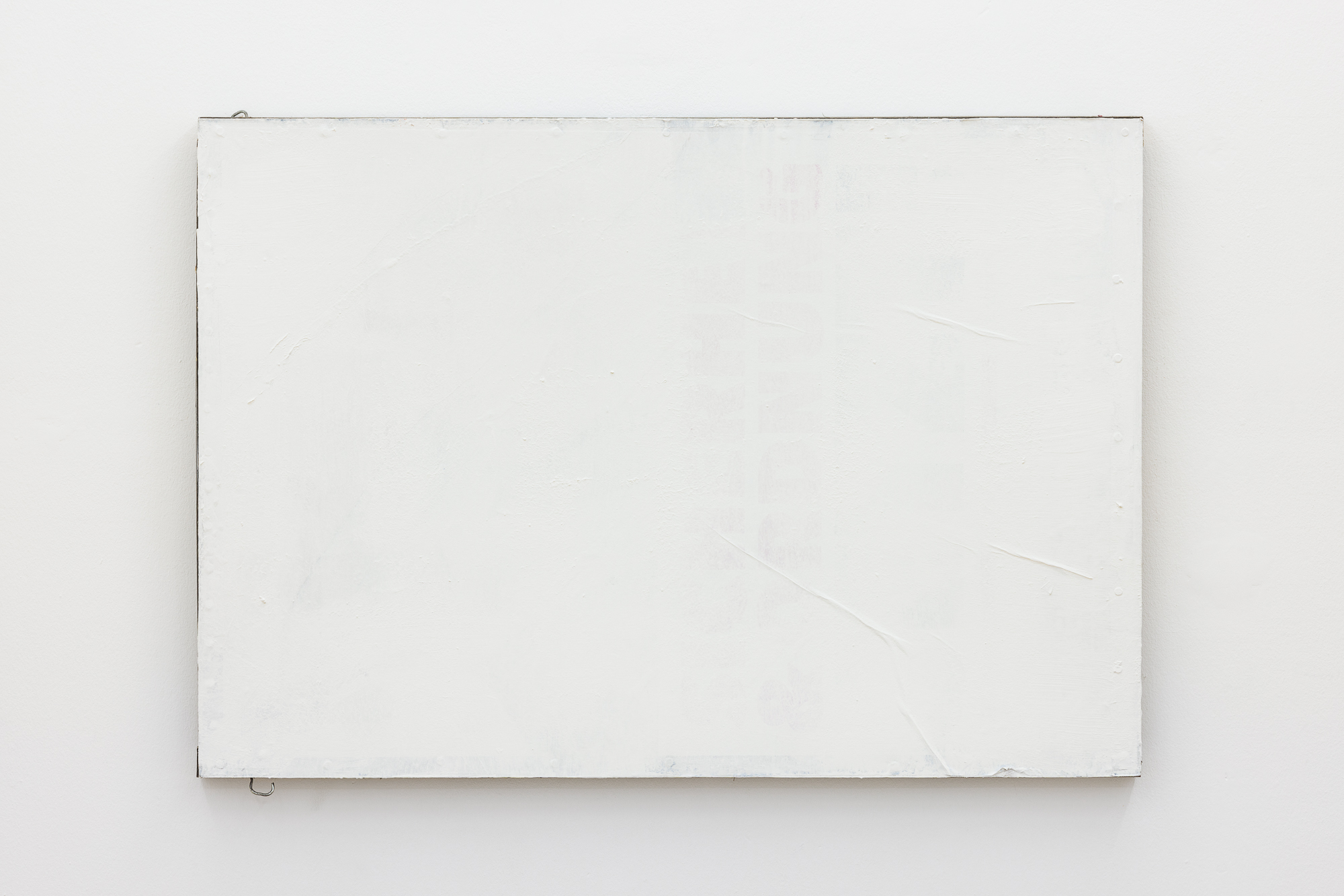 Pol Summer, I miss Brennesselsamen, 2025, Paper, glue, acrylic, oil, lacquer on found canvas, 60 × 40 cm (23 5/8 × 15 3/4 in)