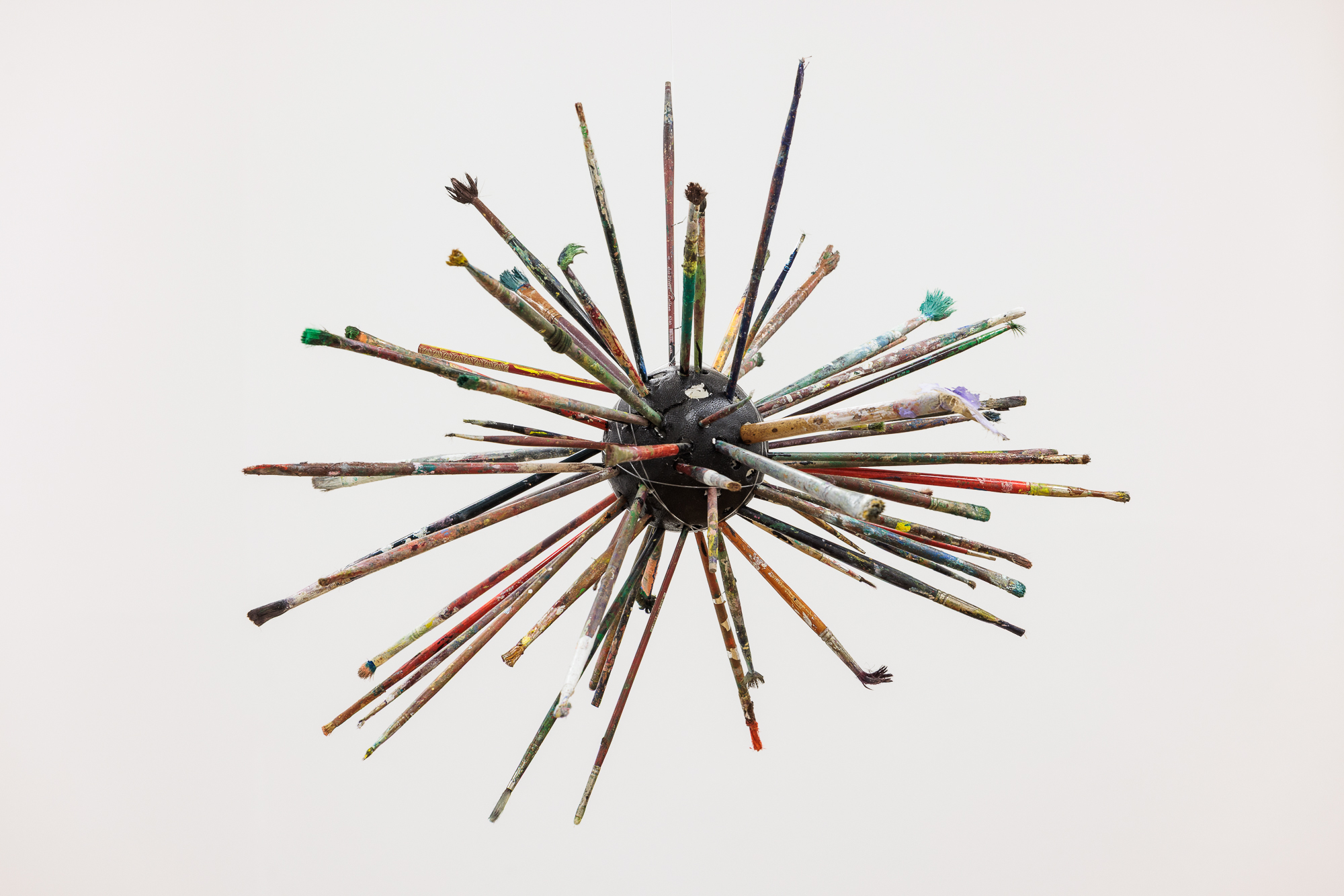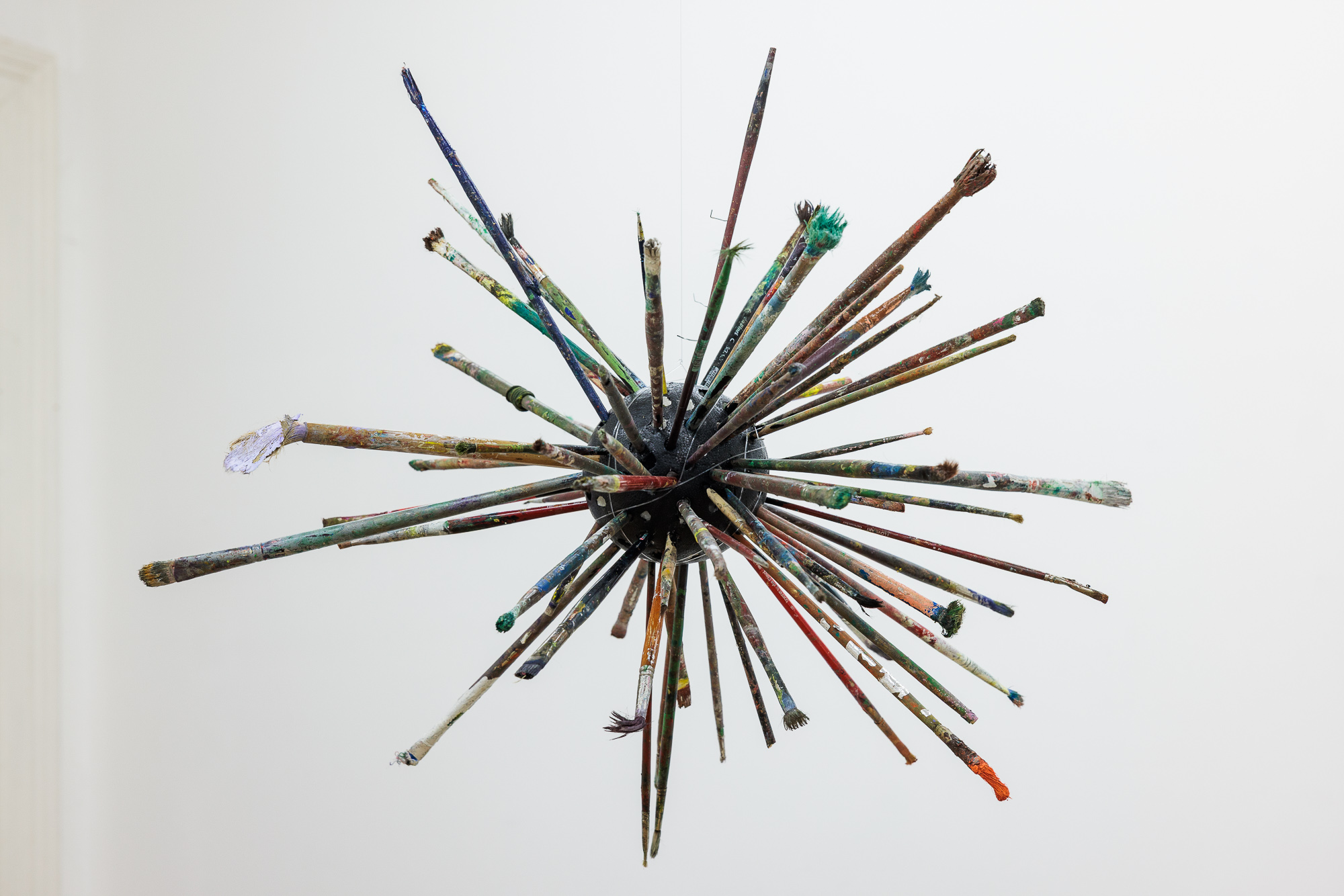 Pol Summer, Untitled, 2023, Oil paint, brushes, staples, styrofoam, acrylic paint, 50 × 60 × 60 cm (19 3/4 × 23 5/8 × 23 5/8 in)