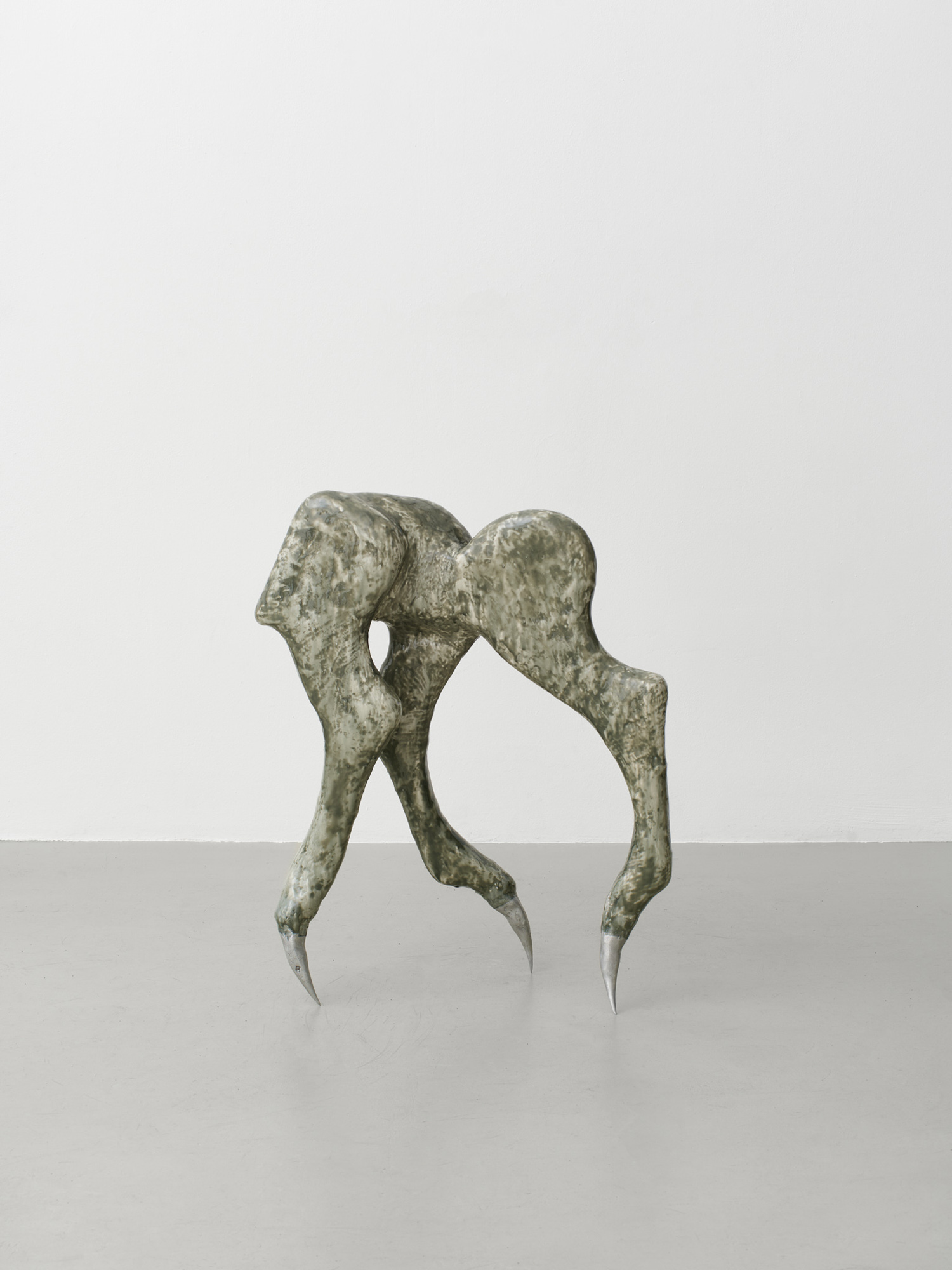 Fragmentation, disruption, and a lack of coherence inevitably challenge social structures and personal identity. This multi-layered existence offers great possibilities but can just as easily lead to disorientation and isolation. In this line of thought, Sally von Rosen’s (b. 1994) often brutal yet poetic sculptures can be perceived as the shear embodiment of that contradiction. Many of von Rosen’s sculptures appear as pairs or as the result of being split apart and reassembled. They are paradoxical hybrids–neither fully animal nor entirely human, extending beyond mere form. They capture the fleeting nature of the subject’s existence, conveying continuous transformation and redefinition.