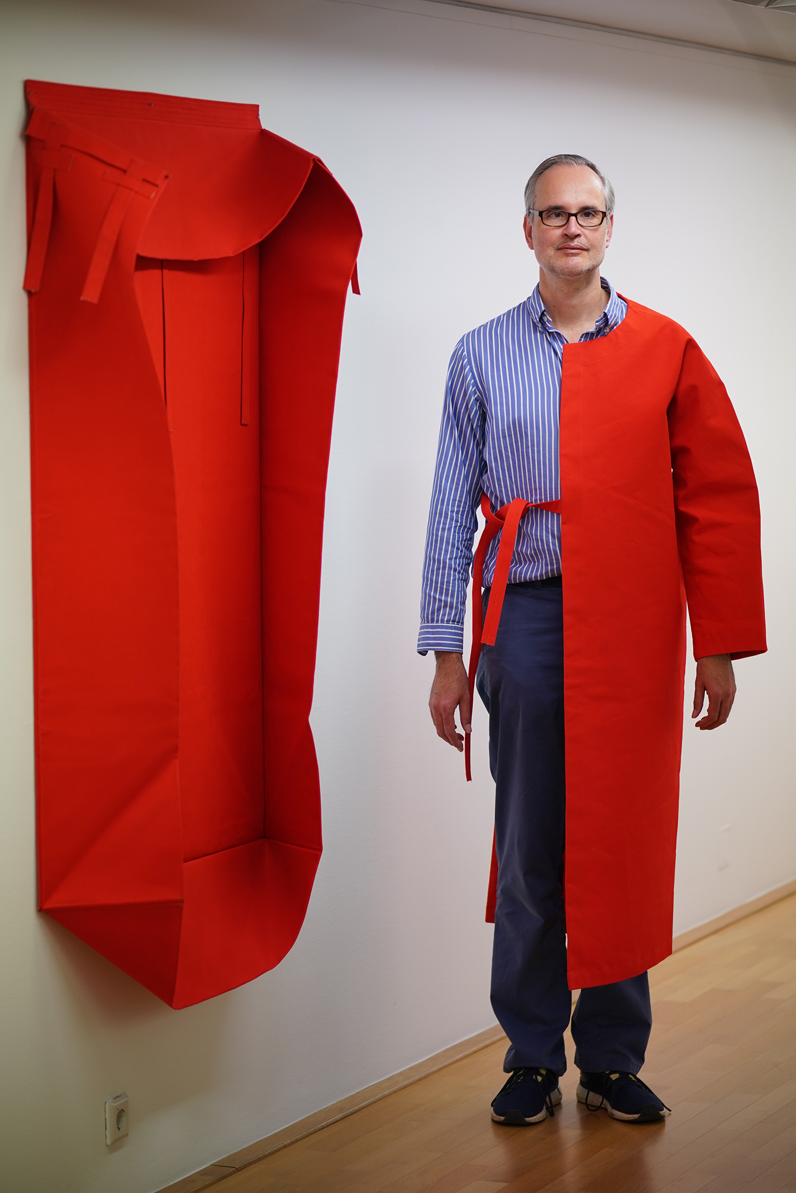 Schubert intensifies this experience of uncertainty, the play with perception, in his paper installations. Especially for this exhibition, a new, walk-in space made entirely of paper has been created by partitioning off a room. We are invited to immerse ourselves in a parallel world, with white walls made of folded paper, a double floor and optically expanded spaces that extend beyond the real spatial boundaries. On entering the installation, we become part of a real staging and at the same time part of the illusion that unfolds here: The illusion of space within space within space.