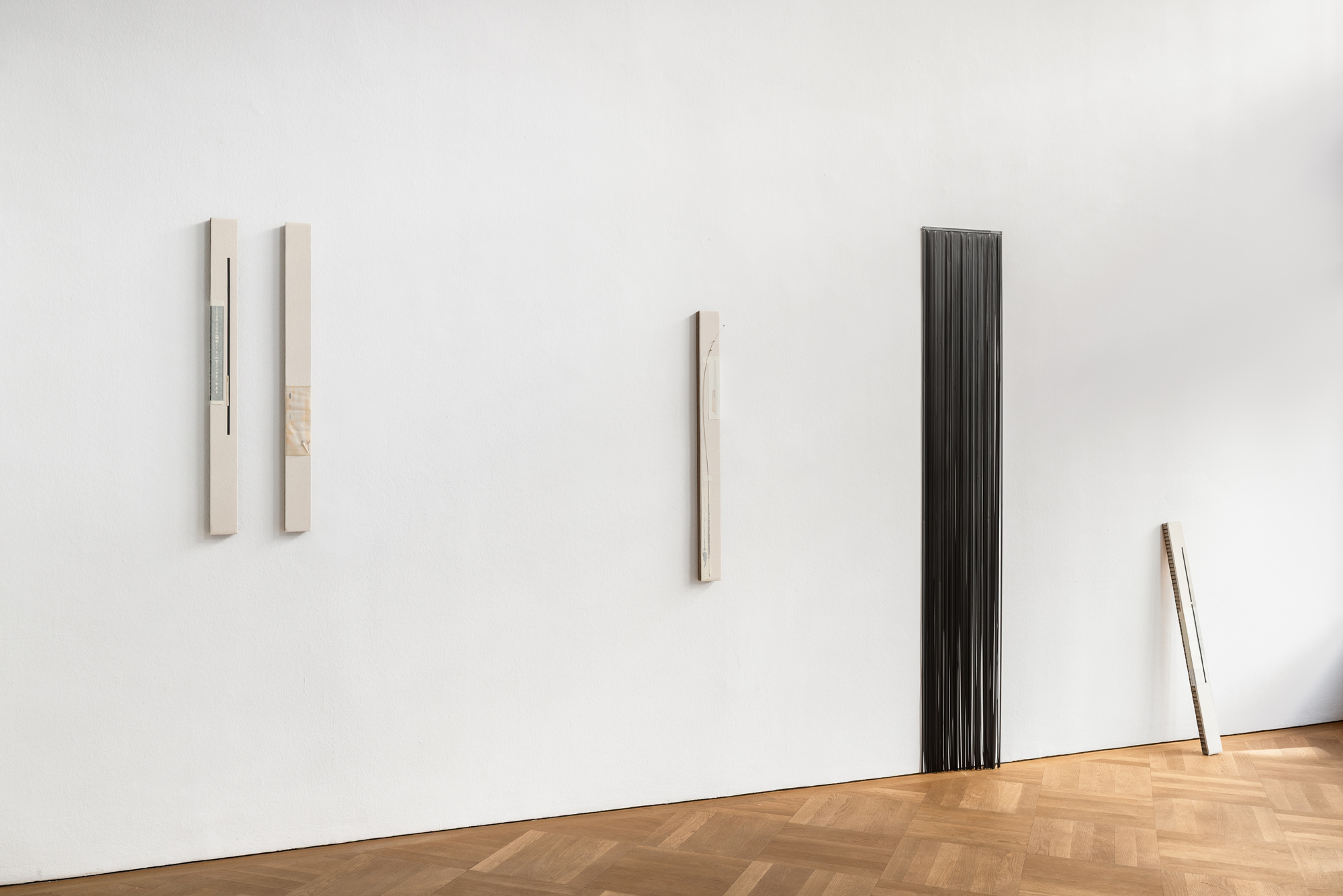 MoreWords as a beginning and a catalyst. Gathering works of four artists whose language-based and -strewn practices at once belong to and resist the idea of representation through speech, the group exhibition Song of Flight is an exploration of the generative potential of language as material and form. As a whole, it forms a loose, fragmented collection of sounds, words, speech and noises which emerge throughout the gallery’s winding spaces – some of these grow in sonic intensity, others remain silent and introspective. Even if language can never fully let go of the hold of representation and its embeddedness within processes of signification, its mnemonic and affective impact is perhaps felt most in its material density; in the ways in which words become part of our embodied memory, again and again coming into focus. Often, it is not what is nameable or sayable that matters most, but what has settled, resists and thus goes unnoticed – that which achieves a certain density and stubbornness and in relation to which there is hardly any outside perspective that can be taken.