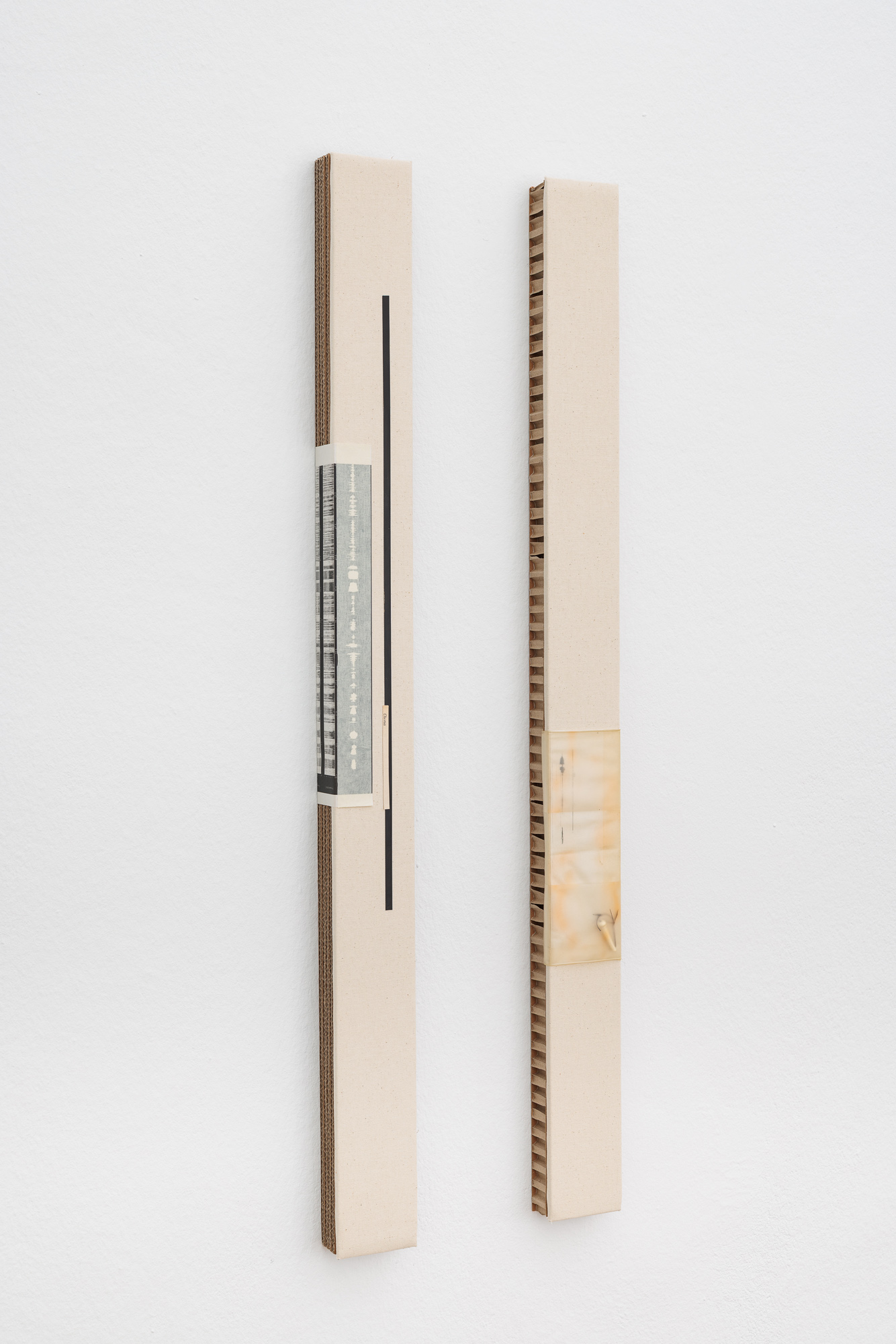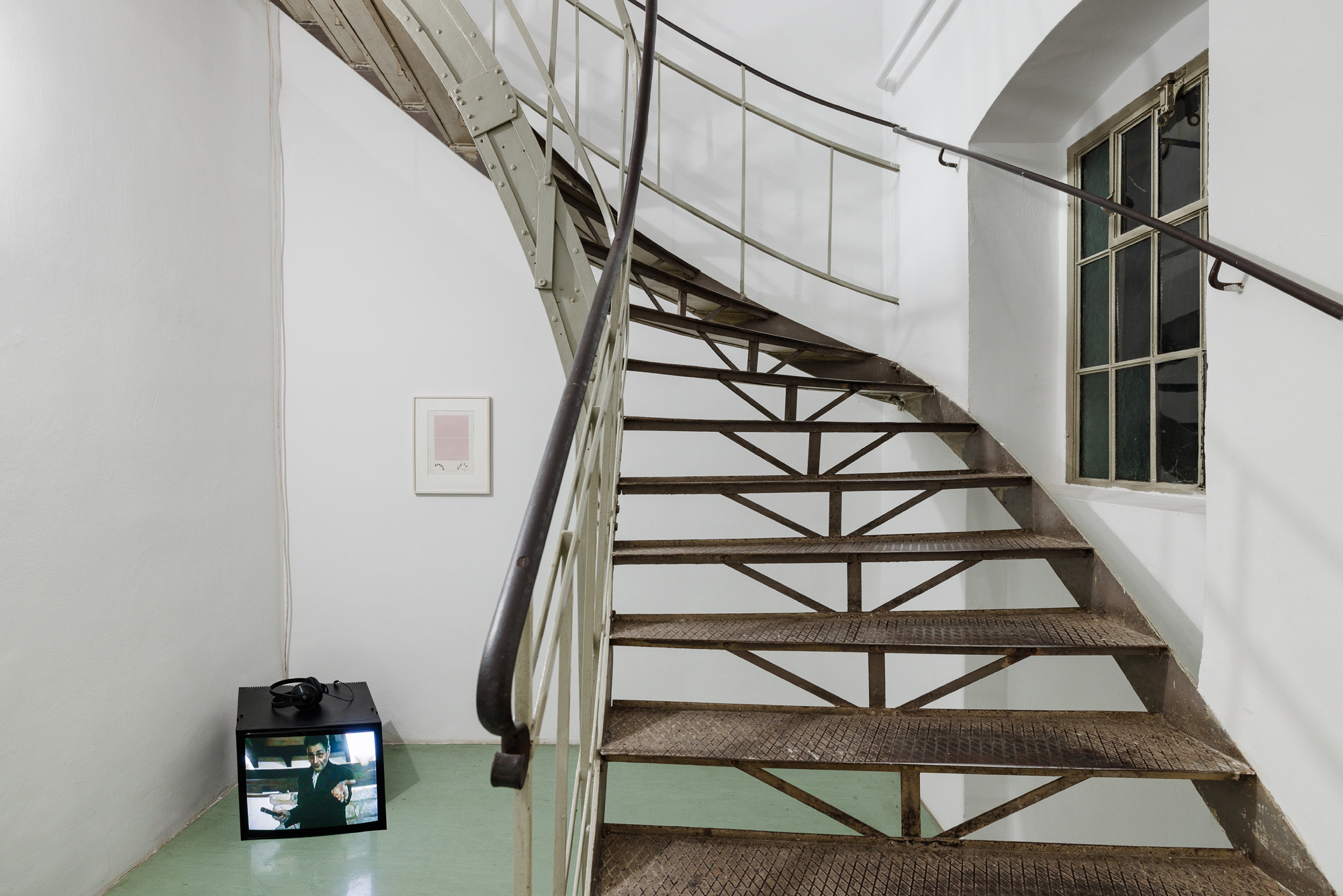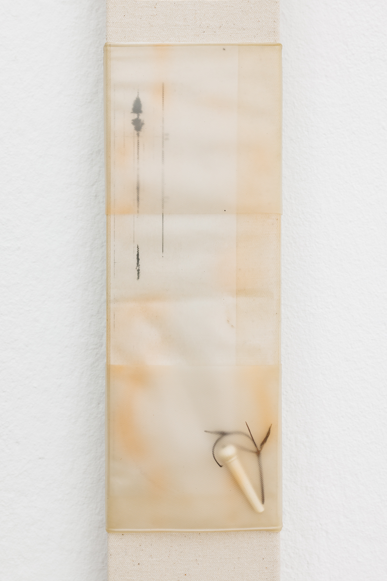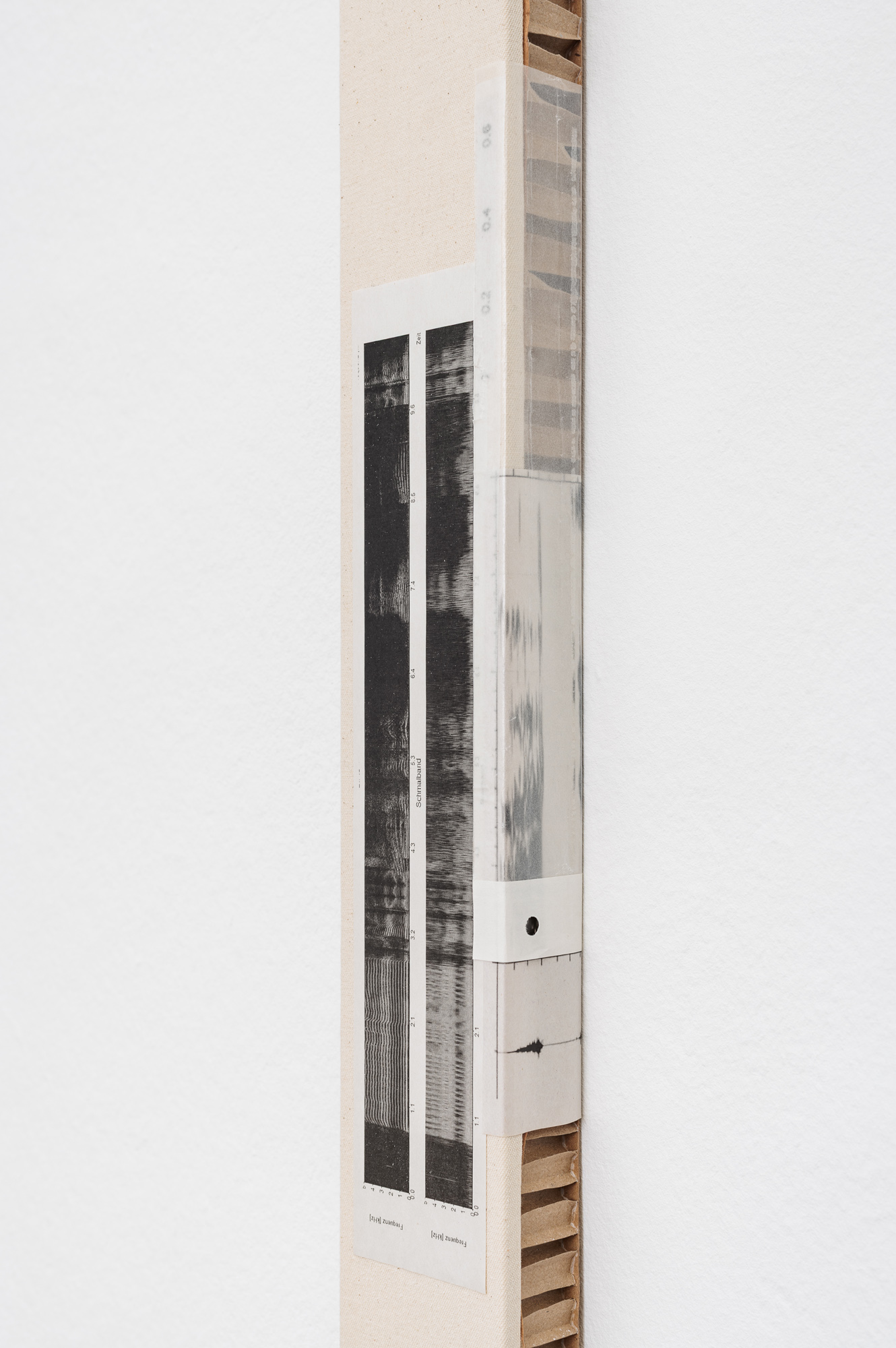 Keta Gavasheli’s multi-media practice likewise draws from a continued engagement with sound, poetry, and performance, often using strategies of collage to approximate the fragmented, opaque nature of memory and interior space. The video work Blurry Middle Distance (2025) for instance sketches a shifting poetic landscape of surfaces, textures, cityscapes, and a demonstration, which are only visible as a blur. As Gavasheli states at one point in the subtitle, it is perhaps wrong to assume that remembering equals owning what is lost, and so the video, while still trying to gather mnemonic fragments, is also a grappling with absence. Other works by Gavasheli containing cassette tape and cassettes act as material records of spoken and performed text by the artist. Language and words appear here only at a distance and as residue, buried, made inaccessible, and archived in another medium.
