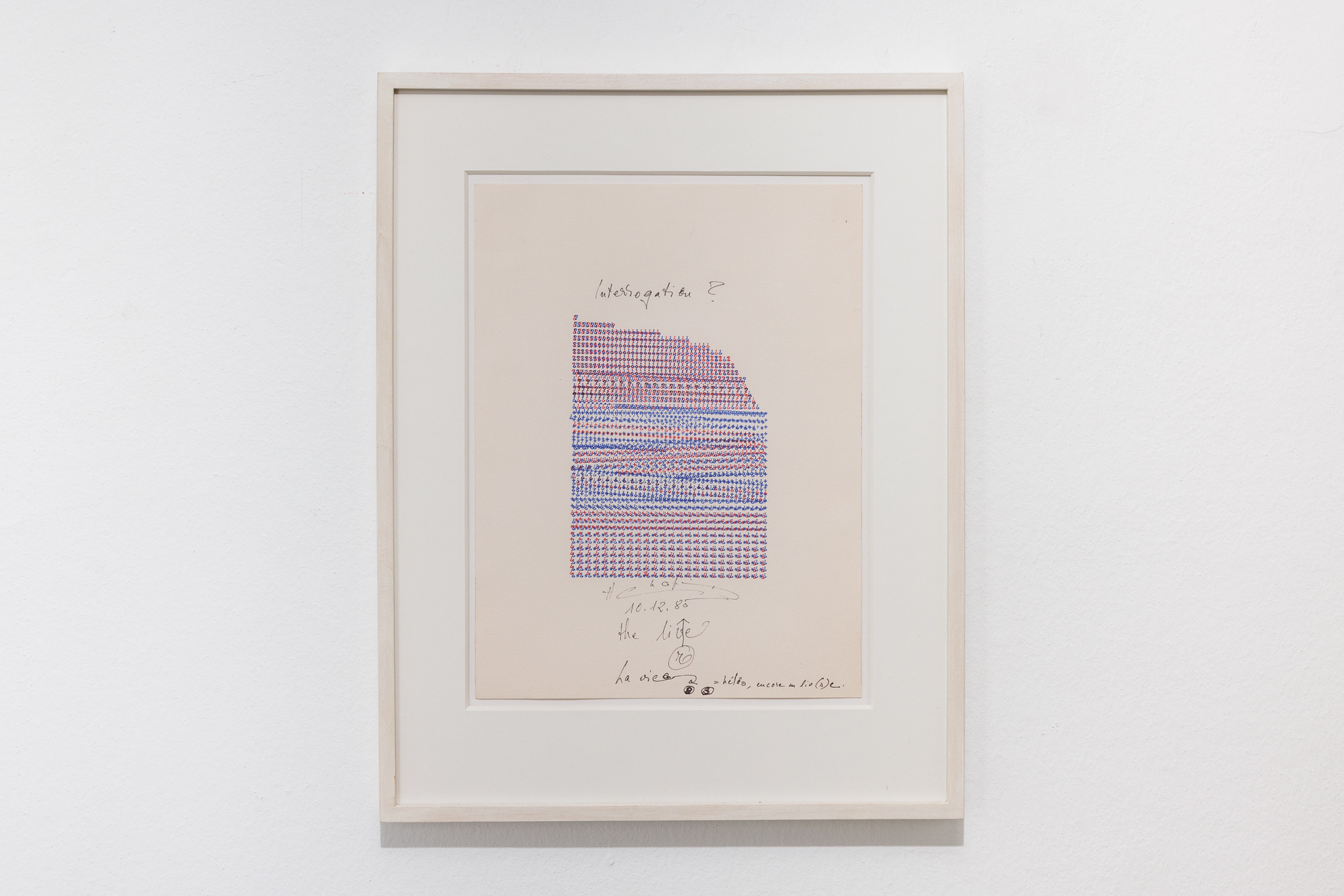 Similarly, the works of Henri Chopin, Keta Gavasheli, Nour Mobarak and Angharad Williams come from a place of embeddedness within language, they act from within it and assume different material forms to engage with this space. At times, the works require a withdrawal from the clarity of speech to approximate the ambiguity and unfinishedness of their subject matter. With the artists drawing and sampling from various sources, words only rarely materialise as words in this exhibition, but are displaced and materially transformed – words become physical objects, images, noises, sounds. While the works may hold the residues of a self (at times they draw from personal experience), any assertion of subjecthood remains unstable, fragmented, and malleable.