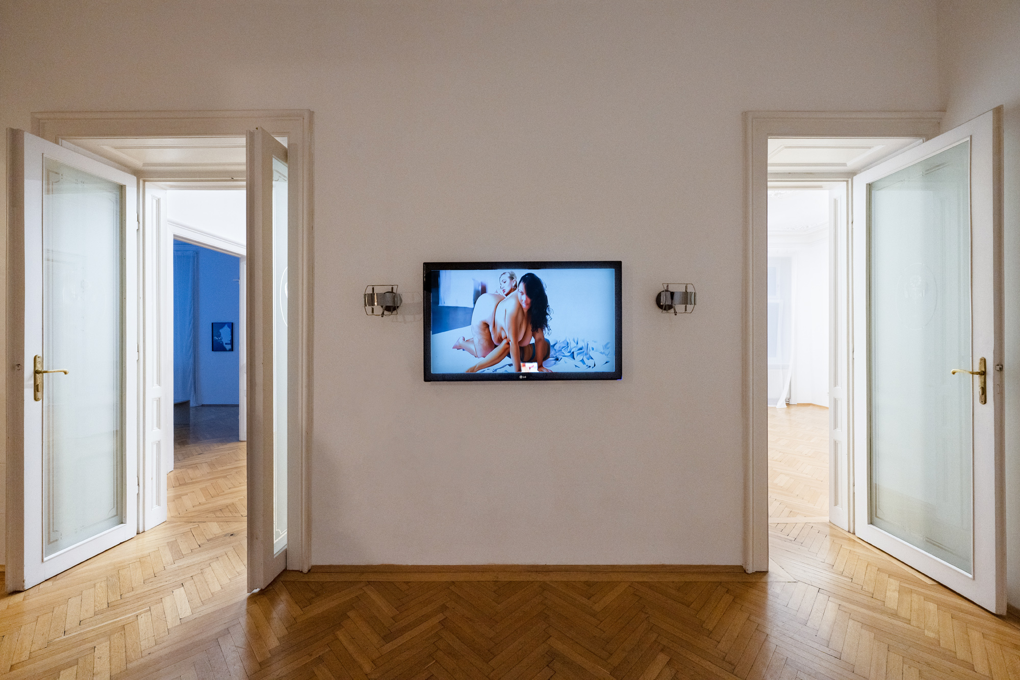 Thirty years later, Giulia Essyad extends this line of inquiry in Cornstar (2024), a work that feels resonant to Rist’s explorations of eroticism, fetishism, and image manipulation but transposed into a contemporary reality—one saturated by AI-generated imagery, gender politics, and the mass circulation of amateur pornography. The piece belongs to Essyad’s ROSE PERIOD, which investigates the invisible, subcutaneous registers of the body—meaning desire, pleasure, attraction. Through censorship, blurring, and anonymity, she engages in a semi-automated, AI-assisted editing process where excess possibilities of tracking and morphing clash against one another.