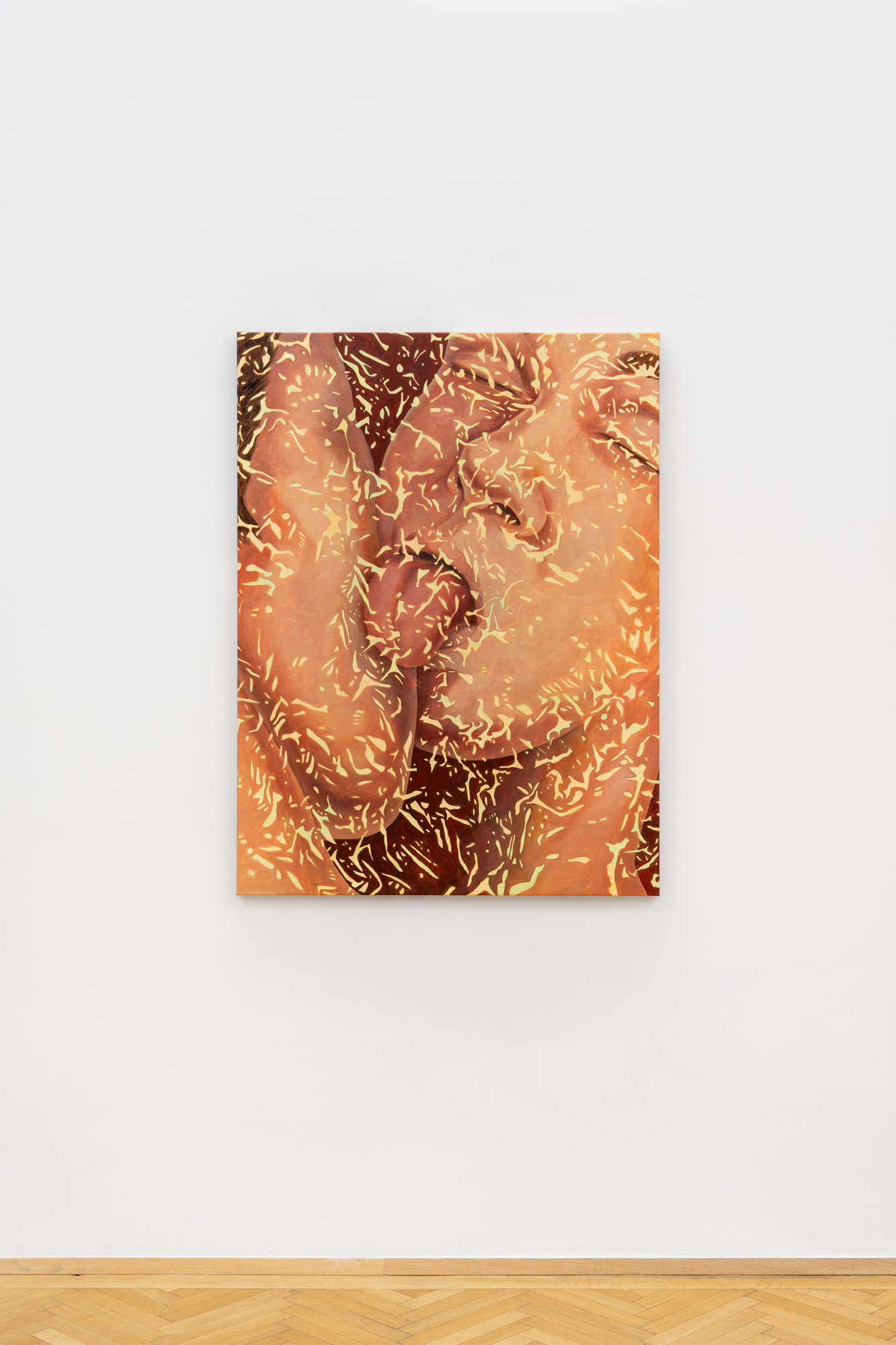 Minda Andrén’s new series of paintings (2025) is inspired by somatic therapies and the intimate ties between body, mind, and sexuality. Internalising images from her immediate environment as well as from the vast flow of the Internet and social media, her works translate these stimuli into painterly compositions. Through accumulation and absorbtion, she explores how erotic representation take form in painting today—not through explicitness but through cracks and gaps, like the memory trying to reassemble fragments together.